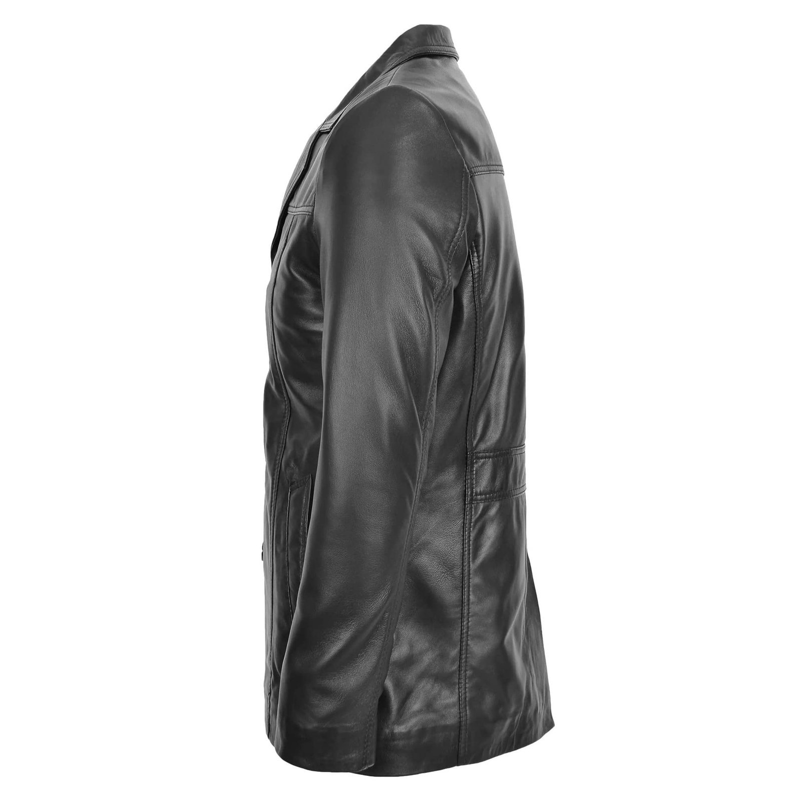 The reefer cut has long been a symbol of understated sophistication. Originally worn by naval officers, the style embodies discipline, strength, and classic tailoring. The Thrill Black brings this tradition into the modern era with a sleek leather finish, making it ideal for contemporary wardrobes.