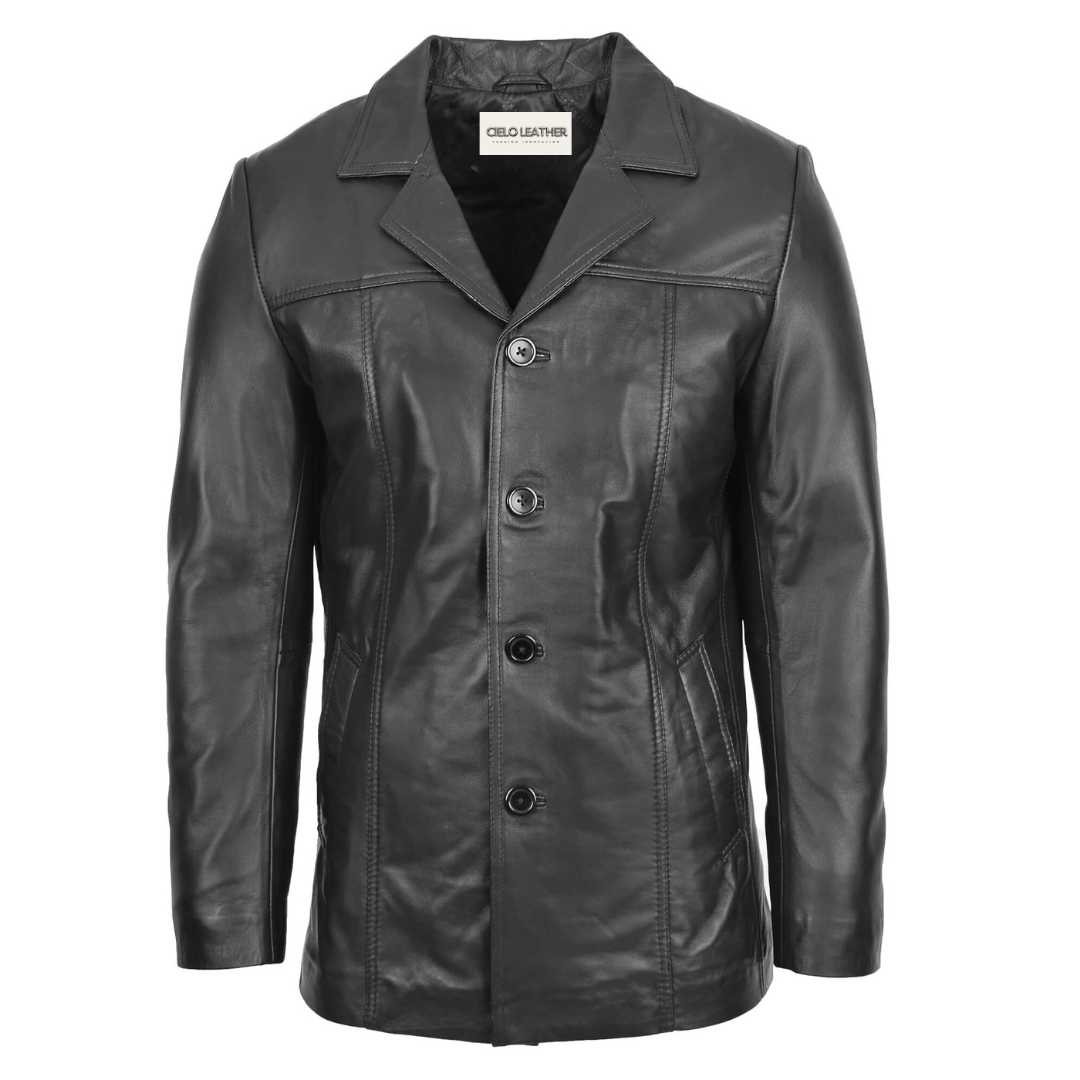 The Mens Classic Leather Reefer Jacket Thrill Black is not just an article of clothing, it is a reflection of the man who wears it. Pair it with tailored trousers for an elevated look, or with jeans for relaxed confidence. Wherever you go, the jacket lends an aura of authority and effortless sophistication.