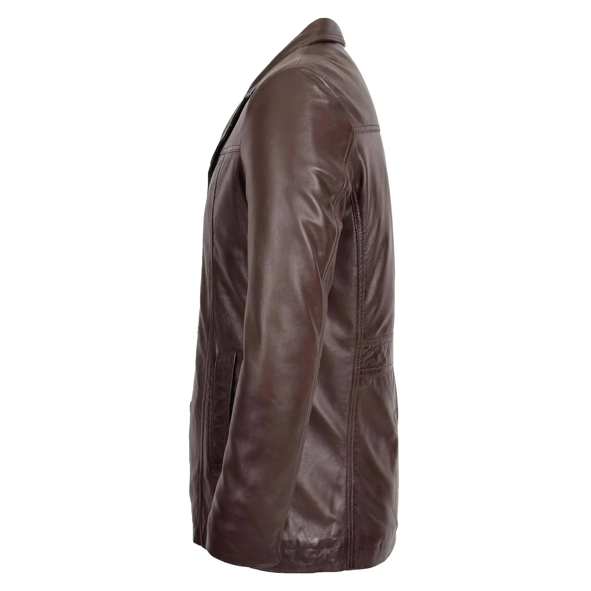 The Mens Classic Leather Reefer Jacket Thrill Brown is more than clothing. It reflects an aura of sophistication, reliability, and timeless charm. Whether paired with tailored trousers for a polished look or denim for a relaxed weekend style, this jacket adapts effortlessly. It is the kind of piece that quietly enhances your presence without ever needing to shout.