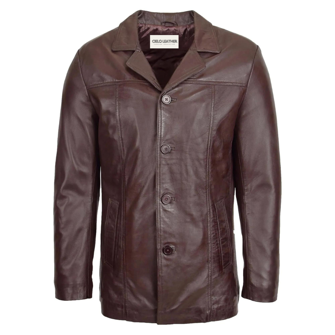 Add a touch of sophistication to your everyday attire with the Mens Classic Leather Reefer Jacket Thrill Brown. This handcrafted masterpiece is your opportunity to own a piece of true luxury. Order today from Cielo Leather and step into a world where style and strength coexist seamlessly.