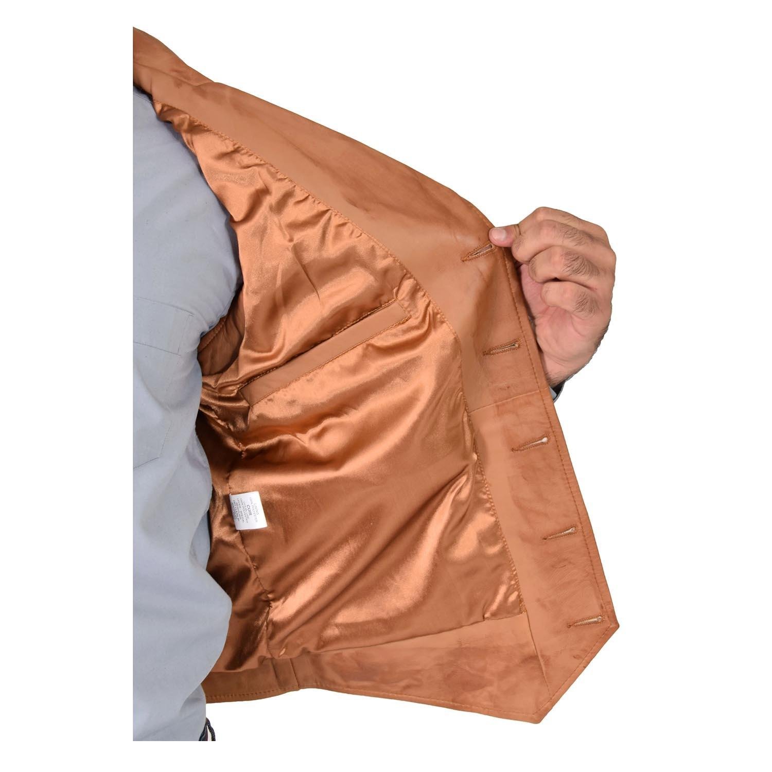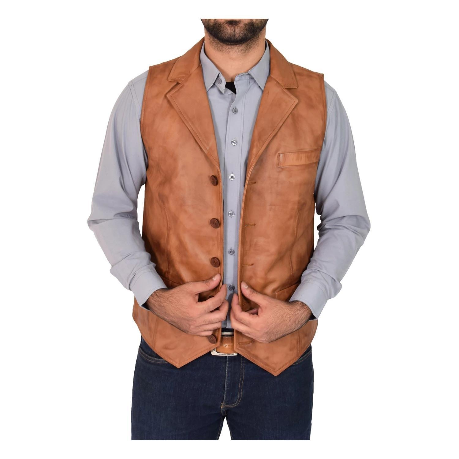Redefine your wardrobe today with the Mens Leather Buttoned Waistcoat Gilet Calvin Tan. Elevate your style, exude confidence, and invest in a piece that blends timeless design with premium quality. Shop now and experience the elegance of handcrafted luxury from Cielo Leather.