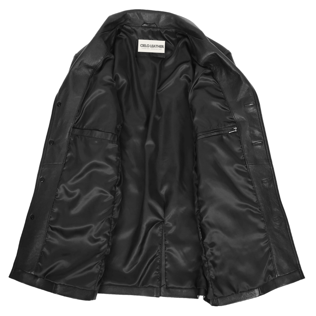 Every Cielo Leather creation is a masterpiece of craftsmanship, and the Jerry Black reefer jacket is no exception. Its sleek profile and tailored fit are a celebration of timeless design combined with contemporary style, making it an essential piece for men who appreciate luxury with practicality.