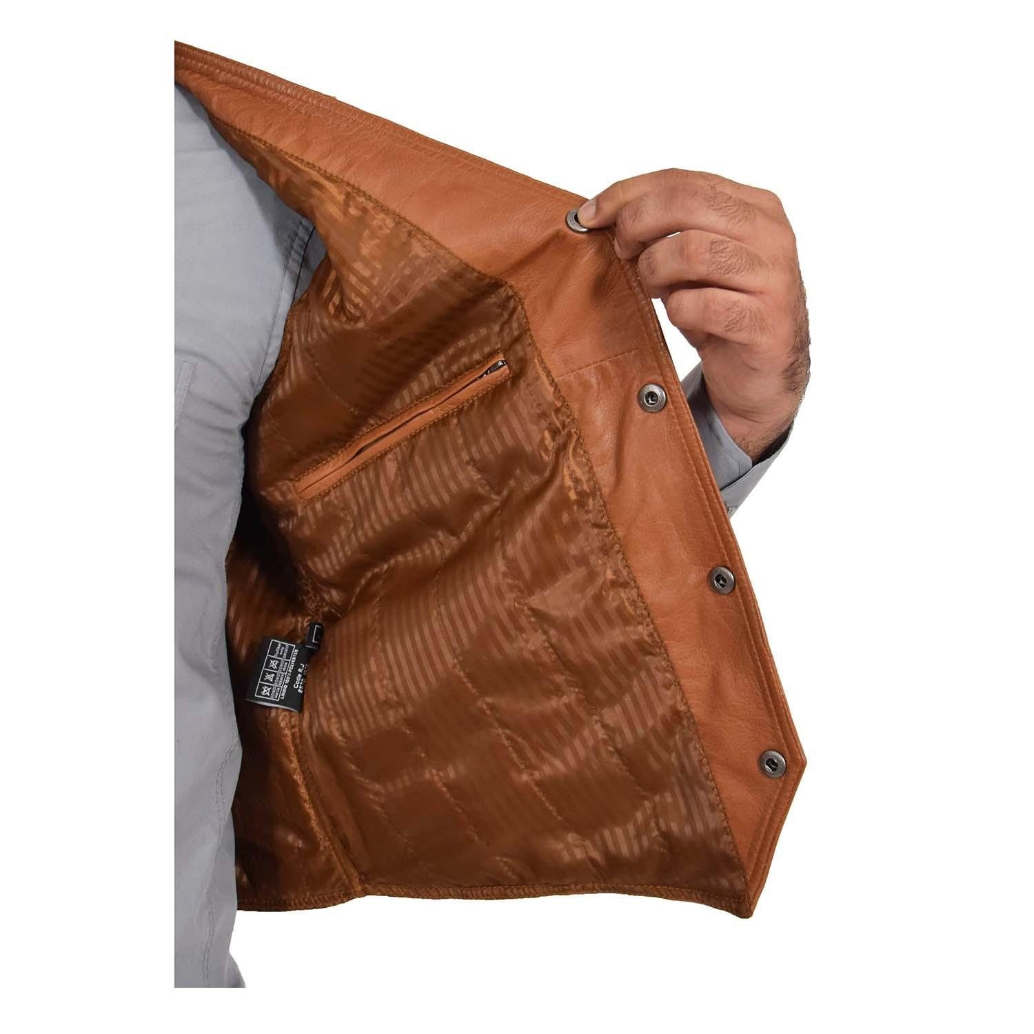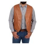 The Men’s Leather Traditional Waistcoat Petrelli Tan is brought to life through skilled artisanal techniques that emphasize precision and durability. Each detail, from the careful stitching to the smooth finish, reflects handcrafted mastery and timeless elegance.
