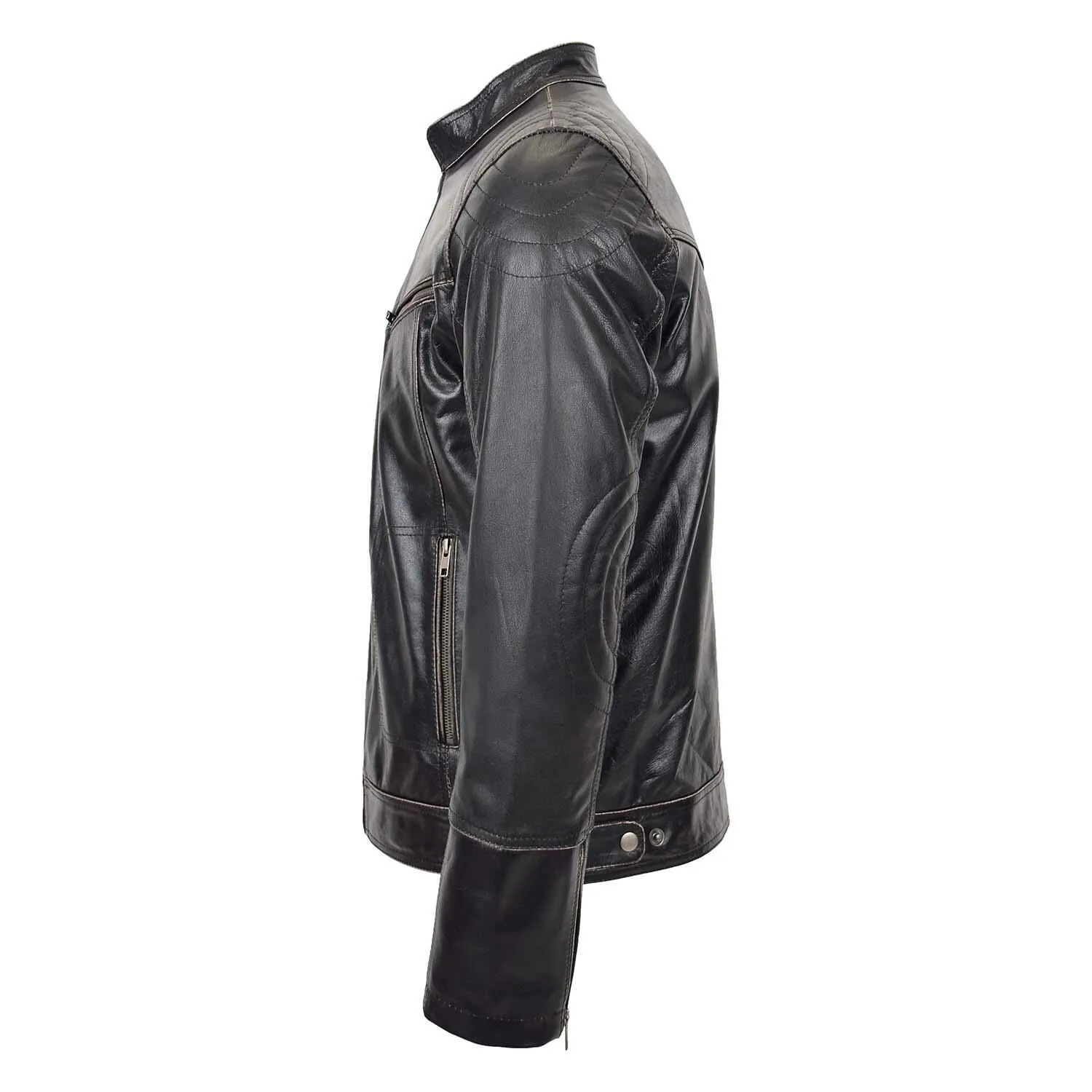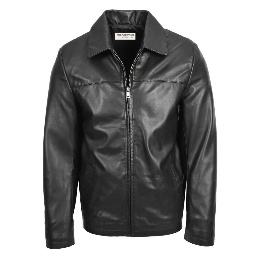 At Cielo Leather, only carefully selected hides are used to create each Mens Leather Zip Box Harrington Jacket James Black. The premium leather undergoes a meticulous tanning process, ensuring durability, softness, and a natural sheen that enhances with age.