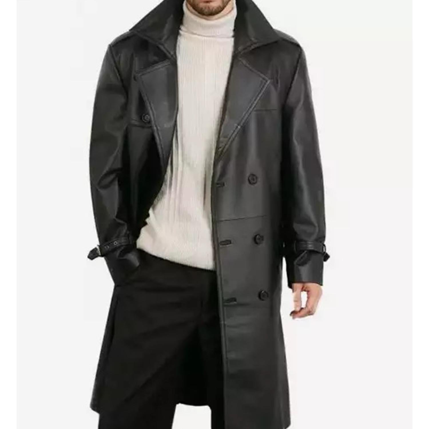 The Men's Premium Double-Breasted Black Lambskin Leather Coat is an icon of refinement and strength. Tailored from soft, supple lambskin leather, it combines luxury with durability, offering a coat that feels as impressive as it looks. Designed with a double-breasted silhouette and a sleek black finish, it is a versatile piece that reflects confidence and timeless elegance.