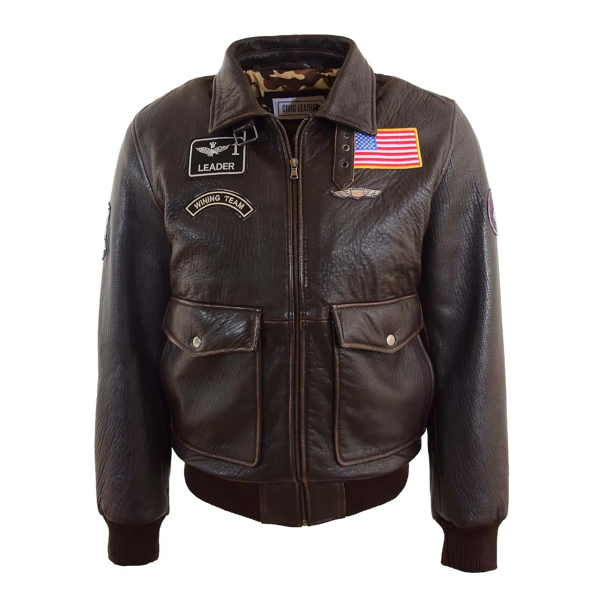 Own a piece of aviation-inspired luxury with the Mens Real Leather G-1 Bomber Jacket Airforce Badges FINCH Brown. Indulge in the craftsmanship of premium handcrafted leather and showcase your individuality with a jacket that commands attention. Order today from Cielo Leather and embrace outerwear that combines heritage with modern refinement.