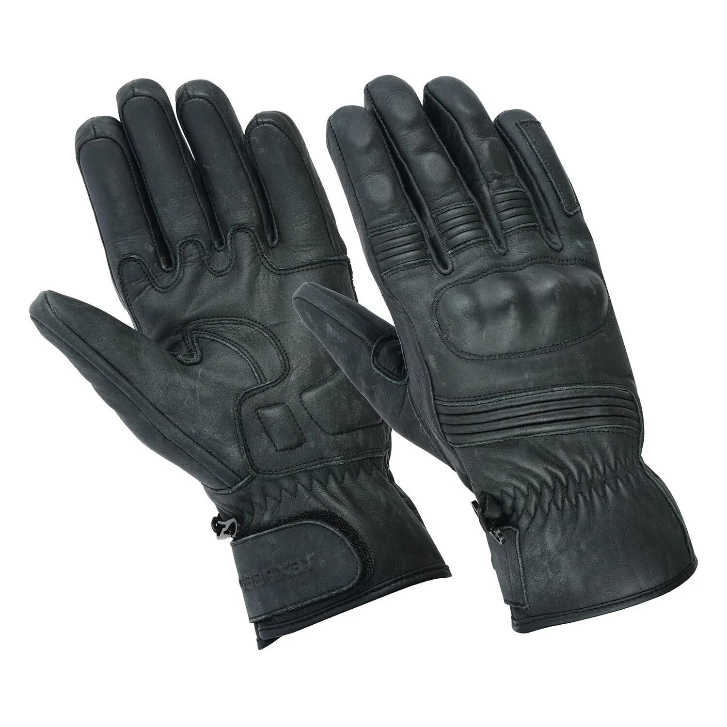 Crafted from full-grain cowhide leather, these gloves provide the perfect balance of softness and resilience. The leather has been treated to withstand the demands of the road while maintaining a sleek black finish that enhances its timeless design.