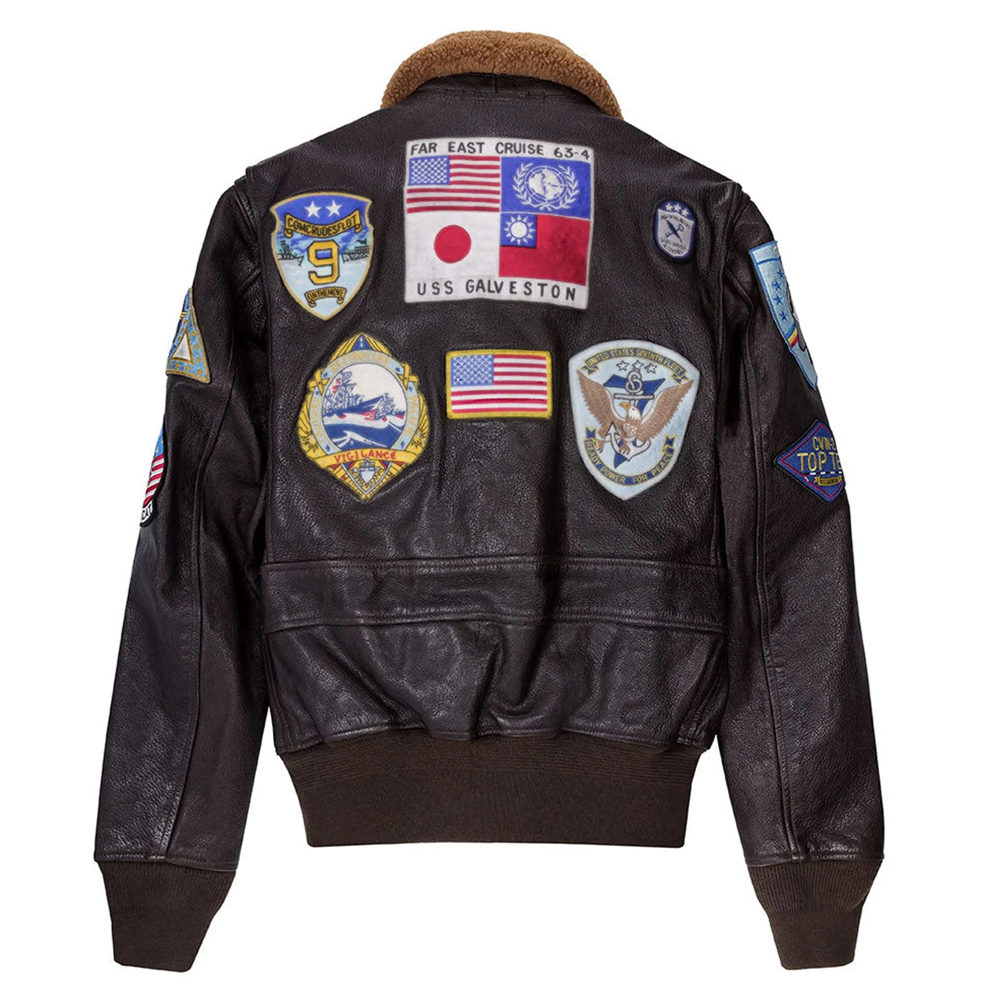 Yes, the jacket features high-quality embroidered patches inspired by the original Top Gun design, giving it an authentic aviator look.