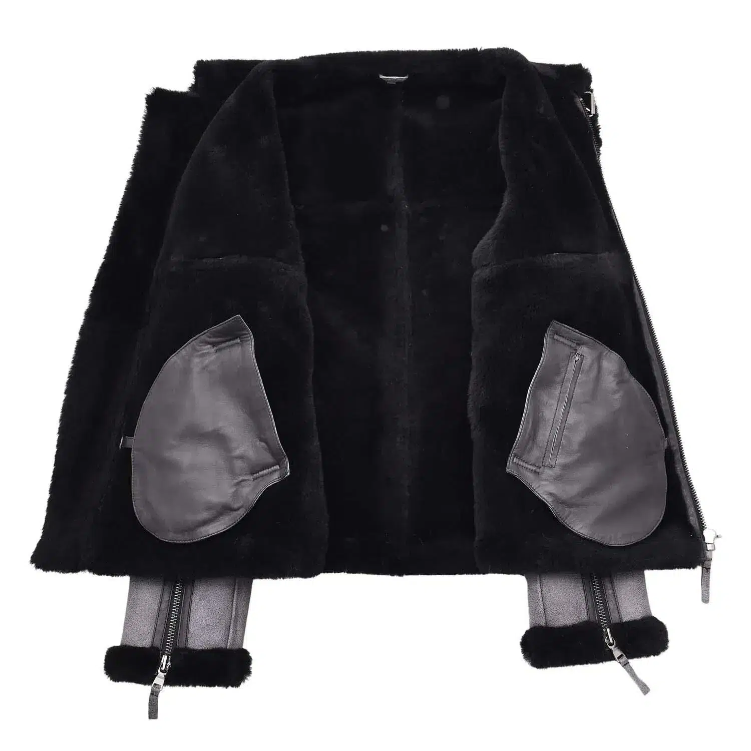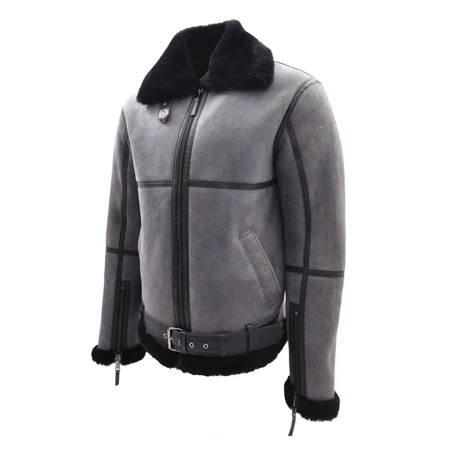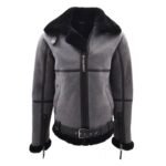 Drawing inspiration from the legendary RAF flying jackets worn during World War II, the Tyler Grey Black Shearling embodies a timeless design that never goes out of style. Its broad collar, adjustable straps, and refined silhouette make it a versatile piece that can be styled casually or formally.