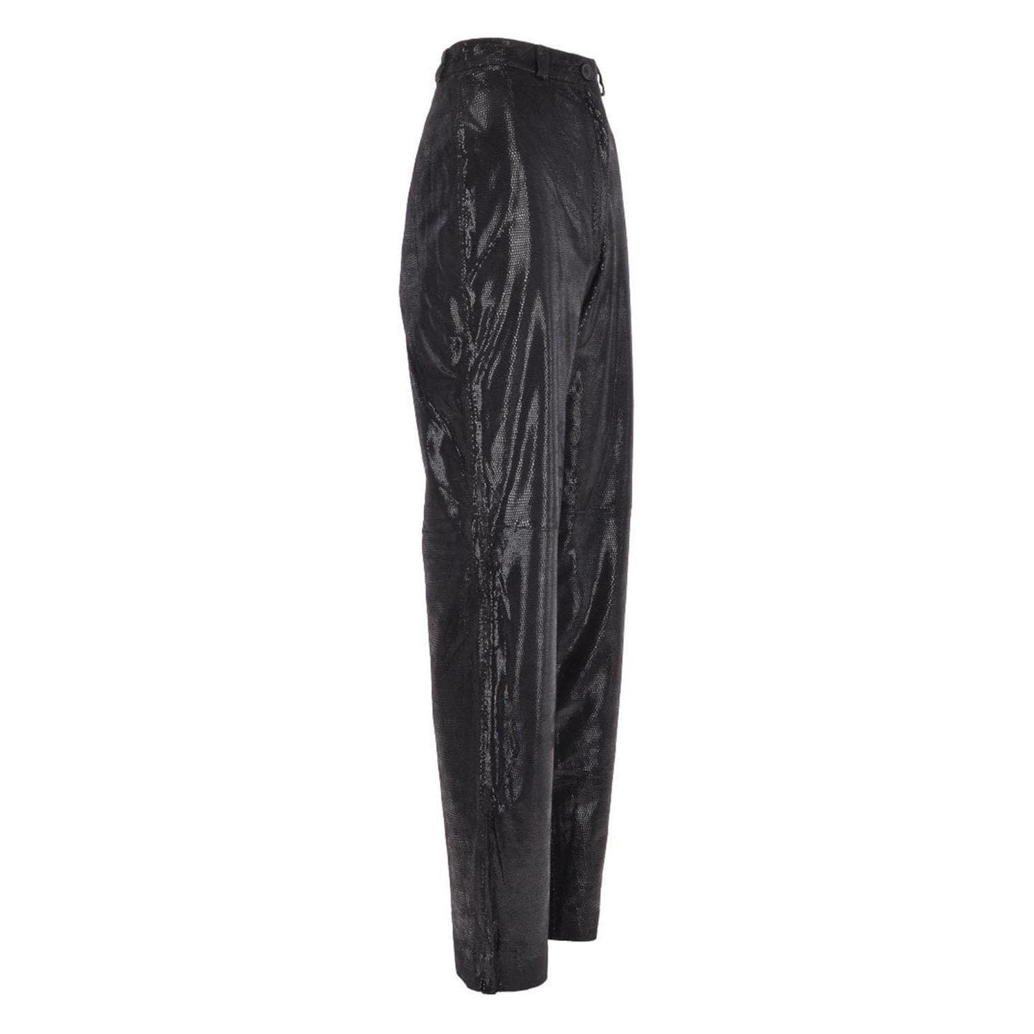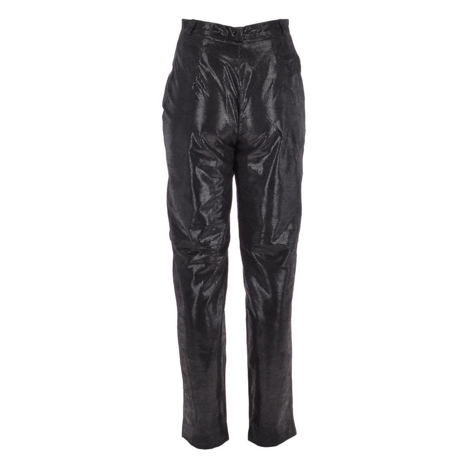 The black snake print finish gives these trousers a unique, fashion-forward character that sets them apart from traditional leather trousers. They pair effortlessly with tailored blazers for an evening out, silk tops for a refined dinner look, or even casual knitwear for a modern urban style.