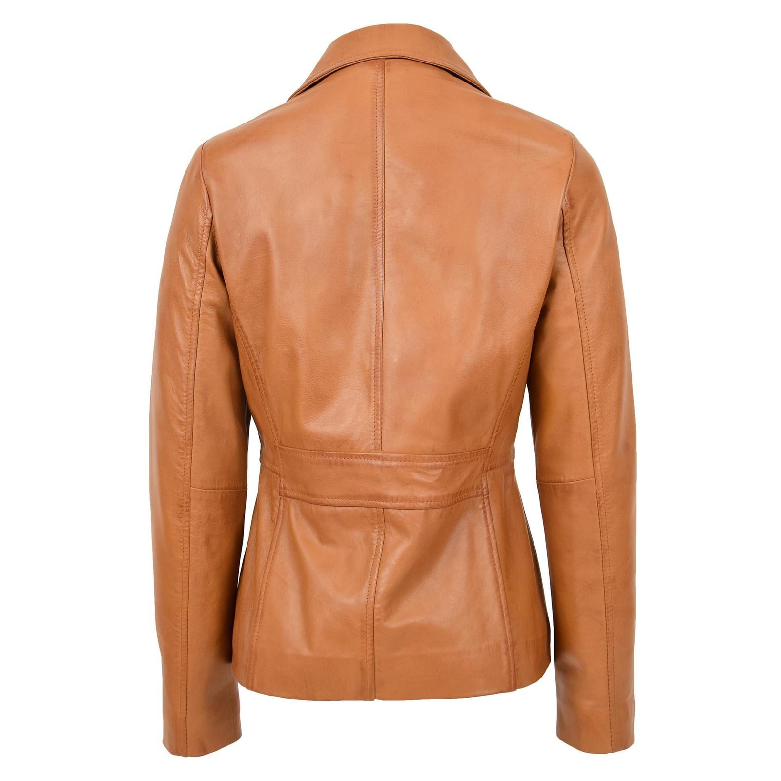 The Ruth Tan blazer is crafted from 100% premium full-grain leather, known for its durability and luxurious texture.