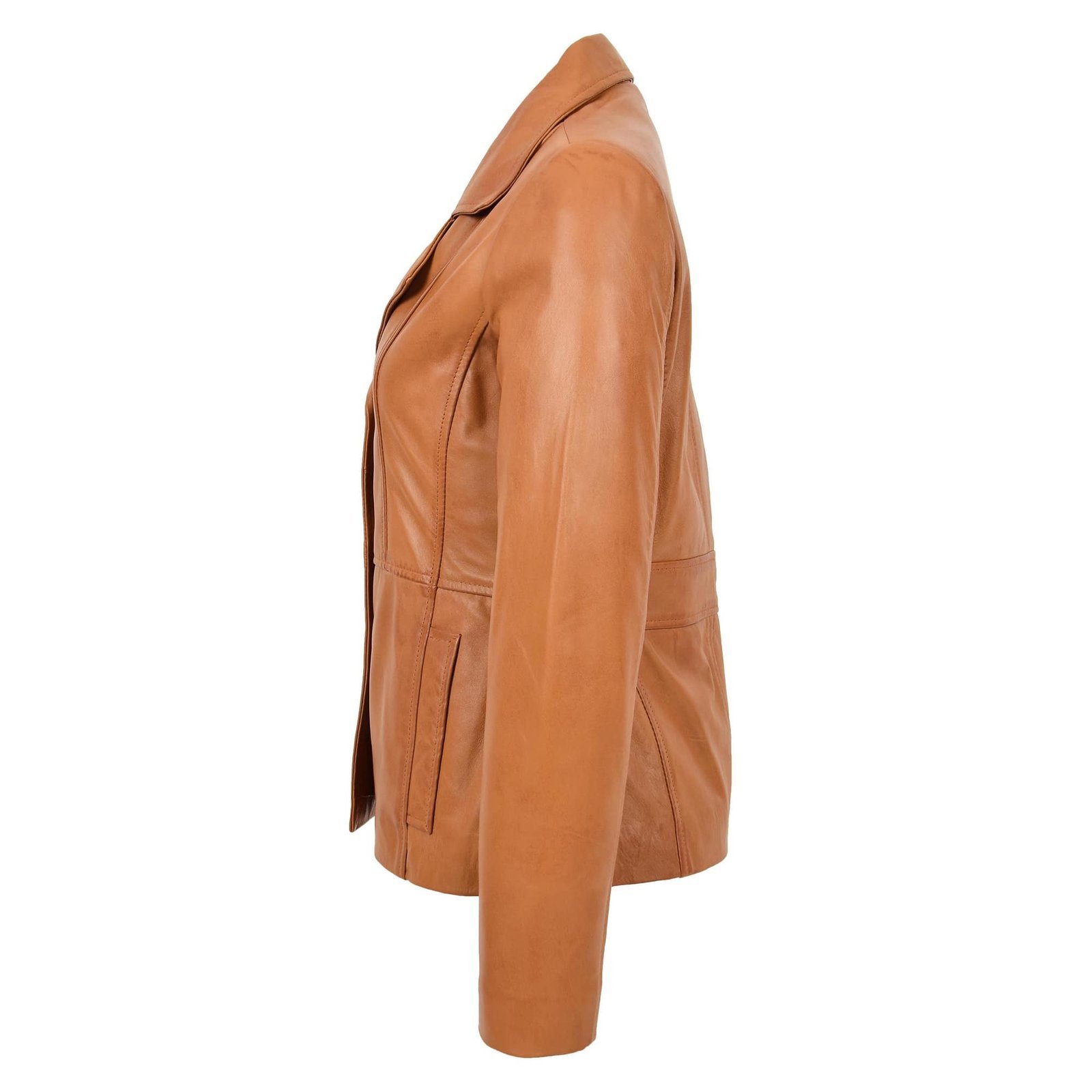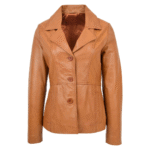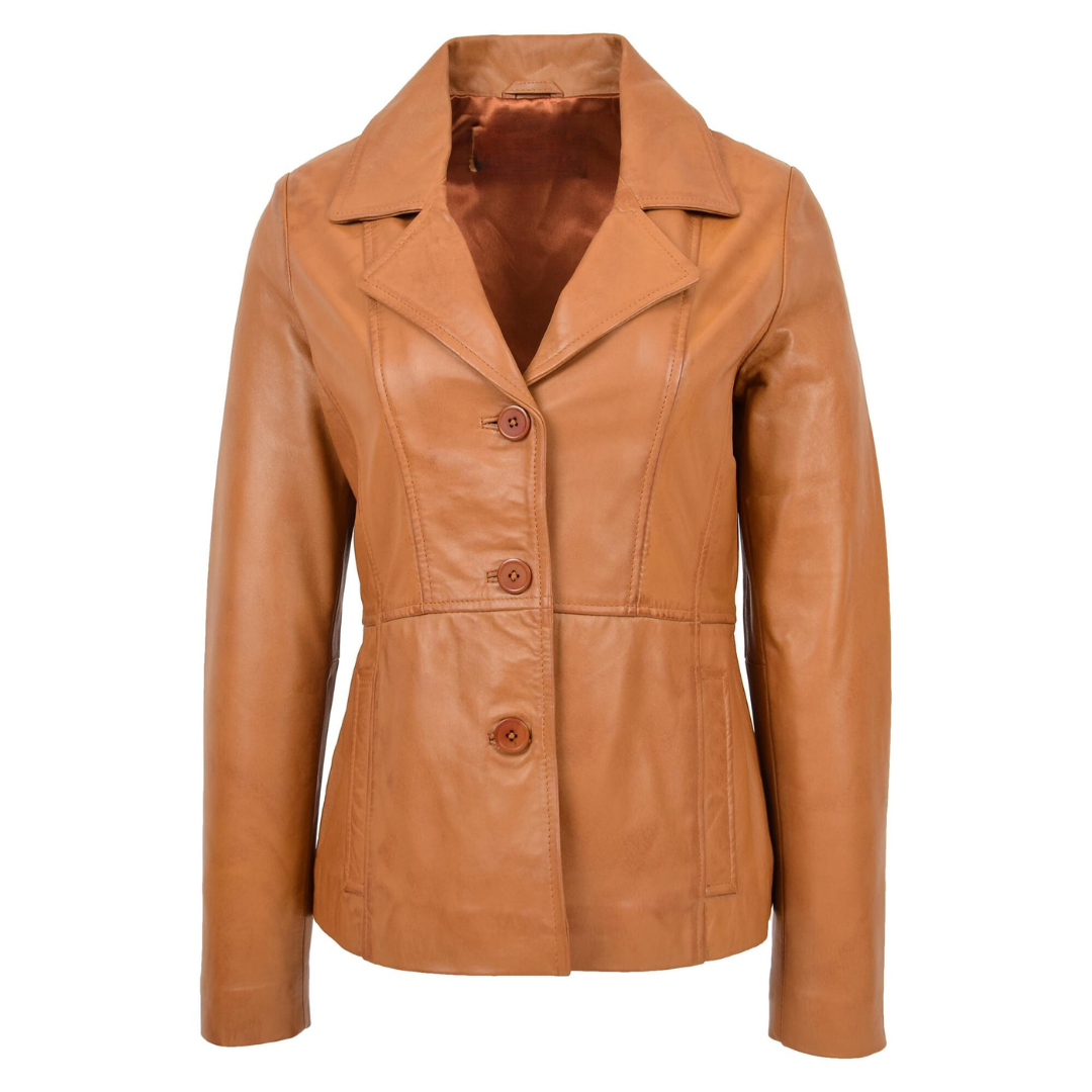 Make the Womens Classic Three Button Leather Blazer Ruth Tan yours today. Invest in a piece that elevates your wardrobe, offering versatility, elegance, and lasting quality. Order now and embrace the luxury of premium leather designed to stand the test of time.