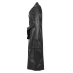 Crafted in a striking full-length design, the Gabbie Black coat features real leather with a smooth natural finish, offering both strength and refinement. It is lined with a soft interior for all-day comfort and includes a secure button closure and functional side pockets for practicality. Its tailored cut creates a flattering profile while maintaining freedom of movement.