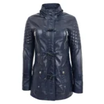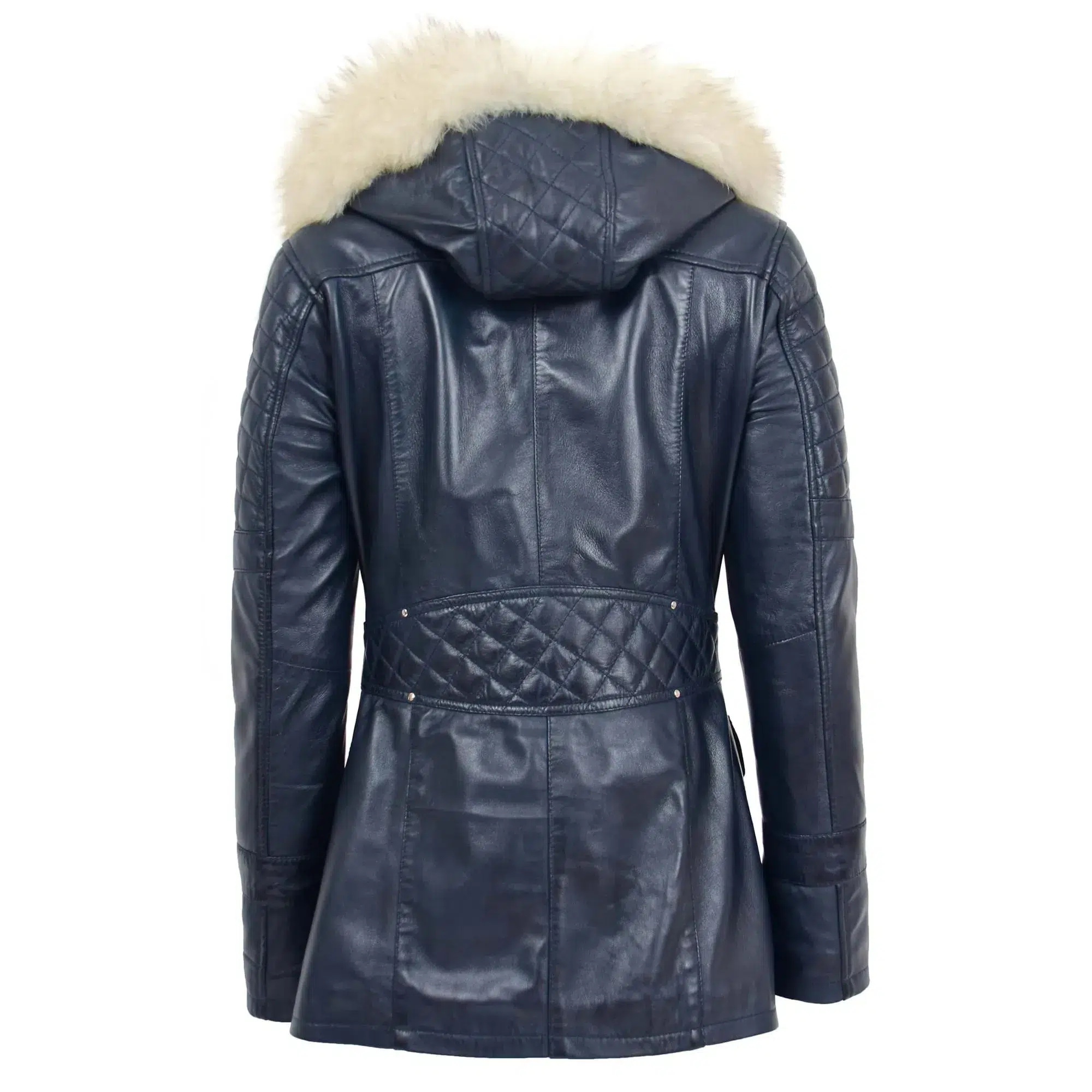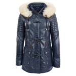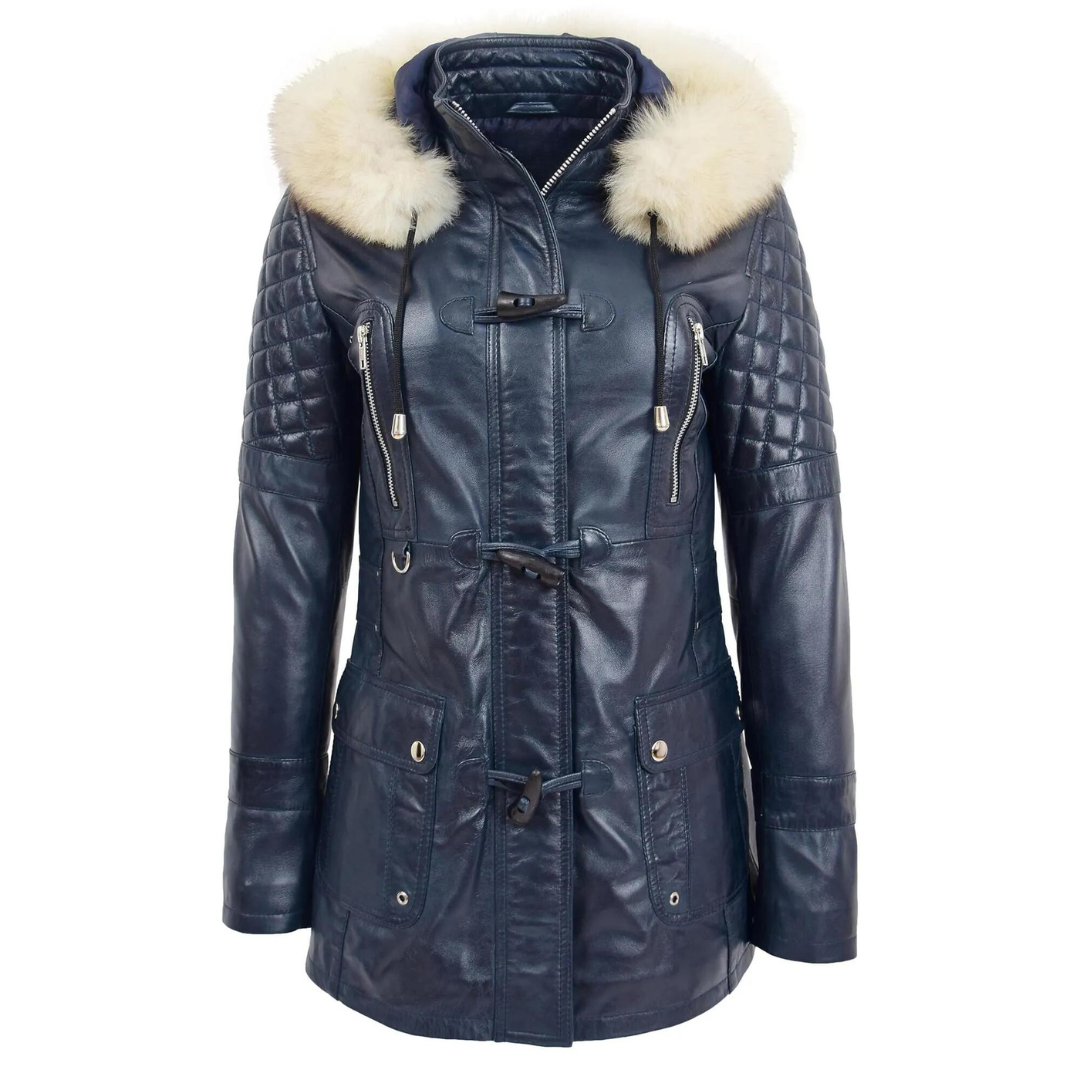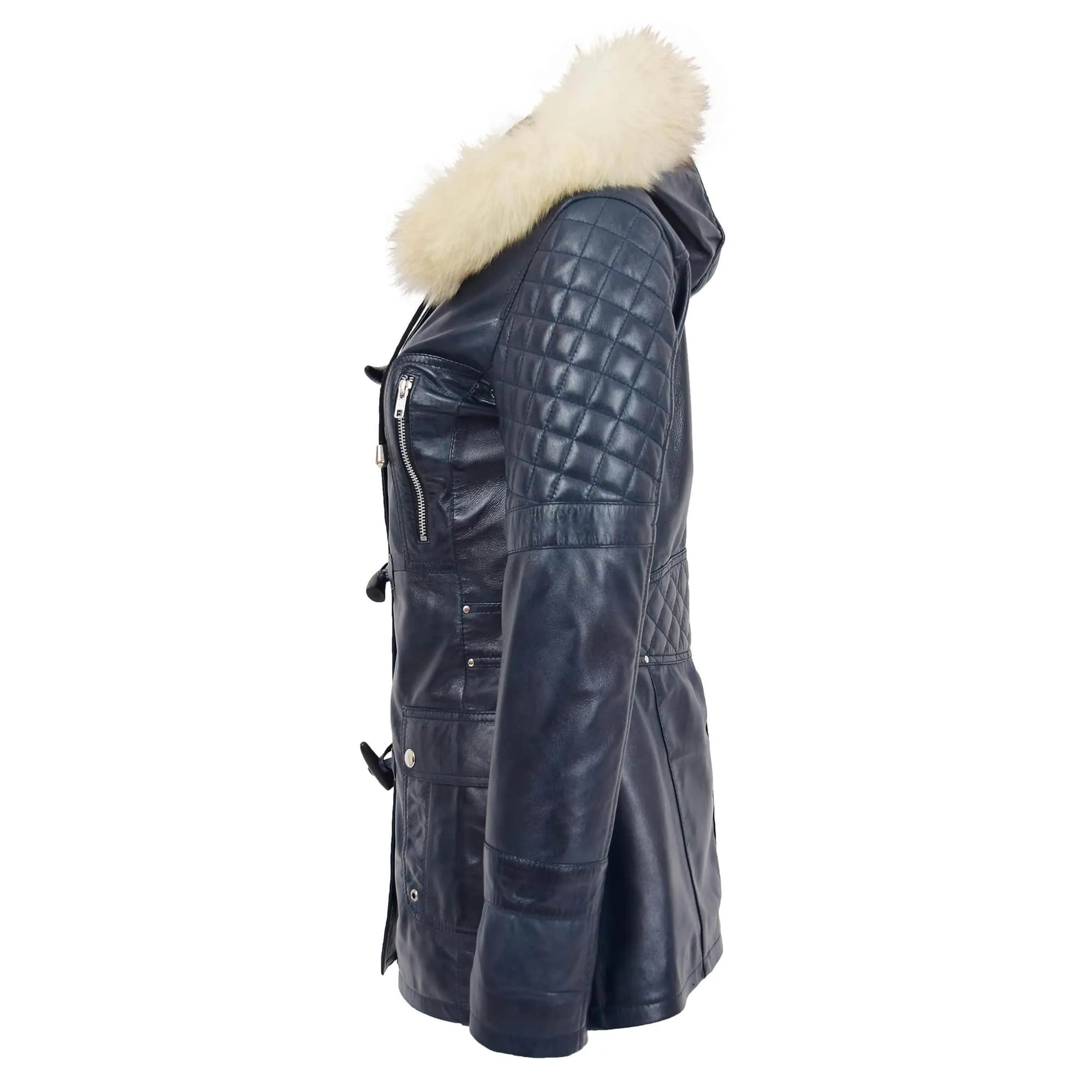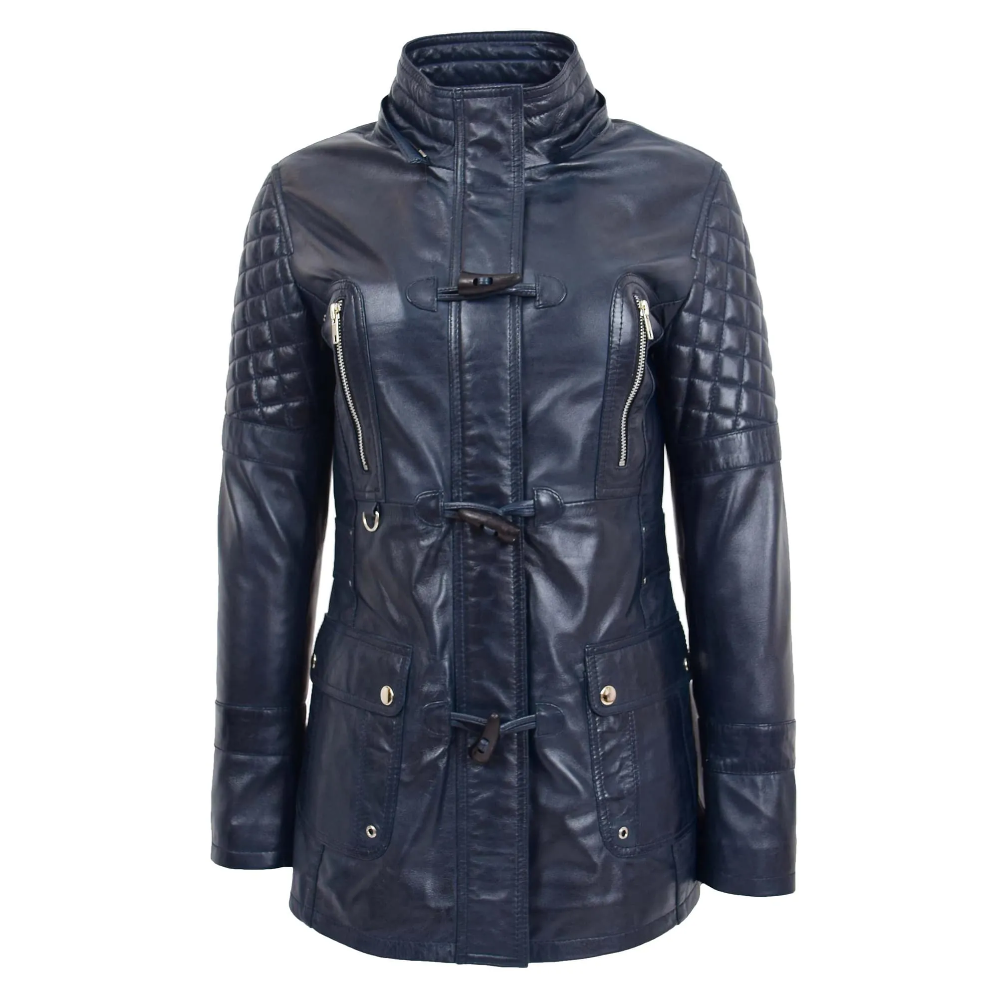 Womens Original Duffle Style Leather Coat Ariel Blue