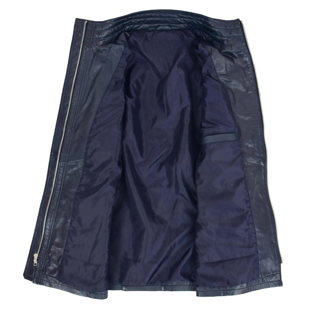 The Ariel blue leather sets this coat apart, making it a versatile yet eye-catching piece. It pairs effortlessly with neutrals for balance or can be styled boldly with other colors for a statement look.