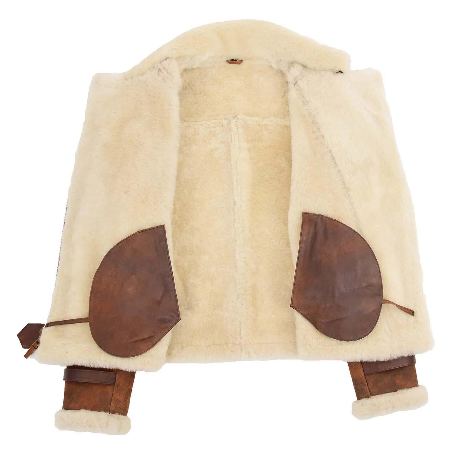 With a soft shearling lining throughout, this sheepskin aviator jacket offers natural insulation against cold weather. Its breathable qualities help regulate body temperature, keeping you cozy without overheating. Whether you’re braving the winter chill or enjoying a casual outing, this jacket guarantees lasting comfort.