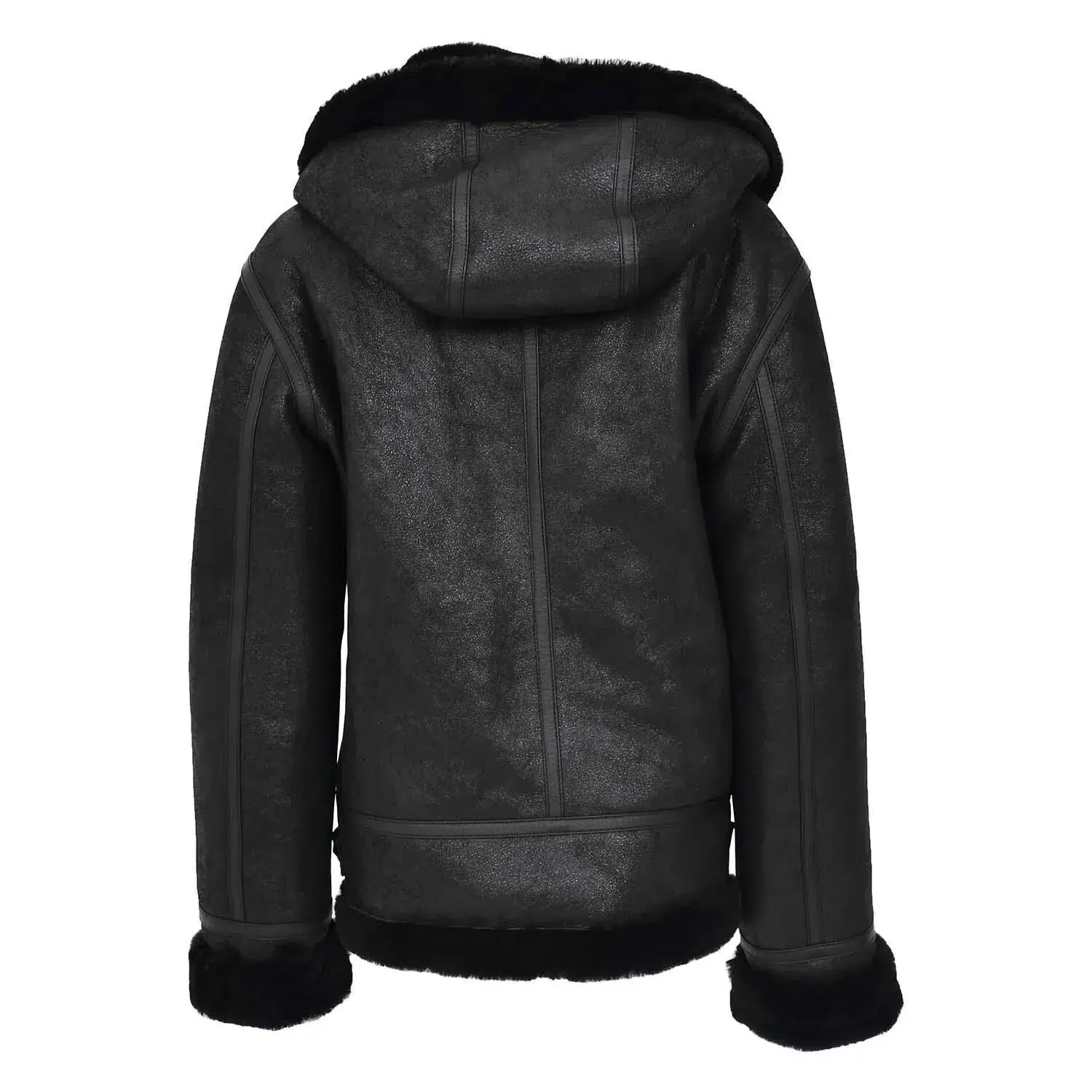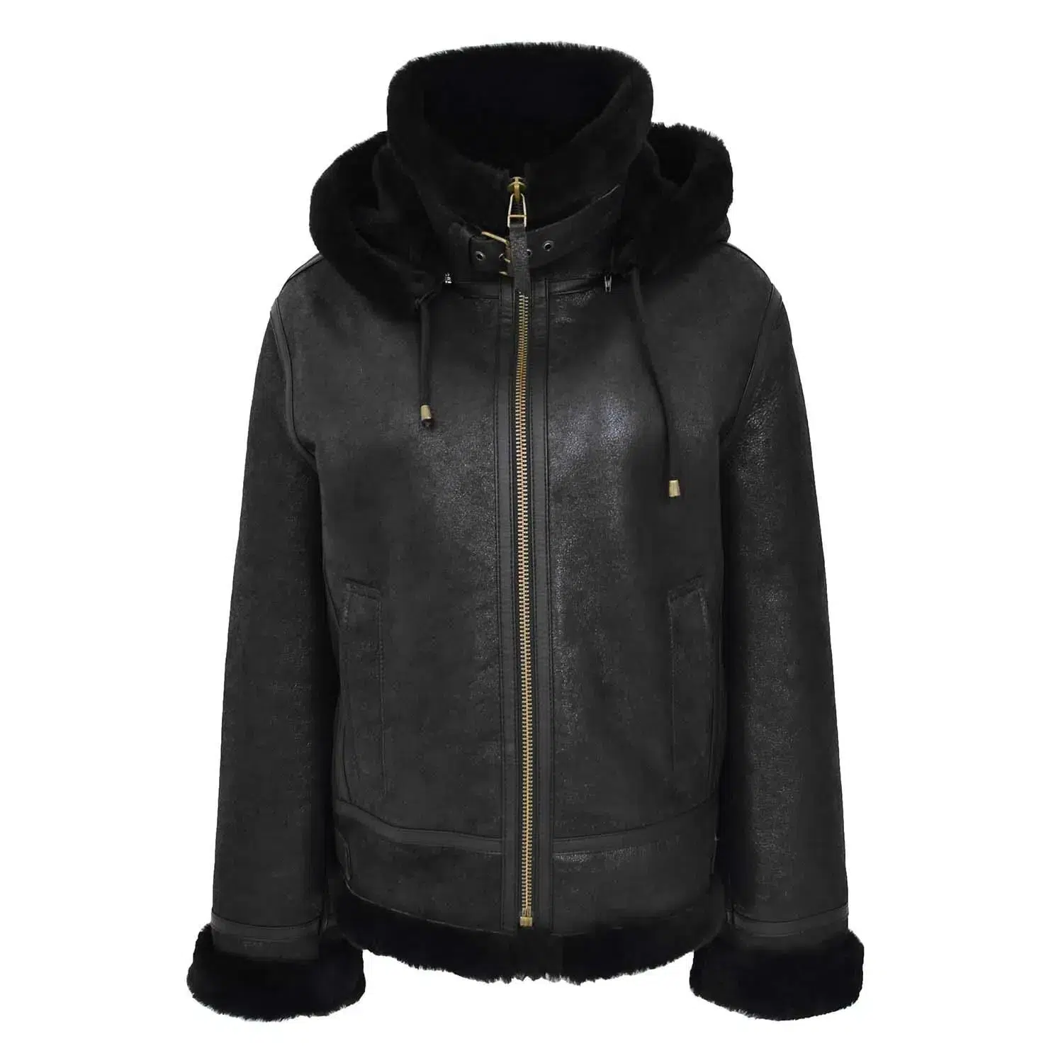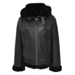 Womens Sheepskin B3 Detachable Hoodie Jacket Naomi Black